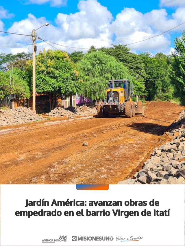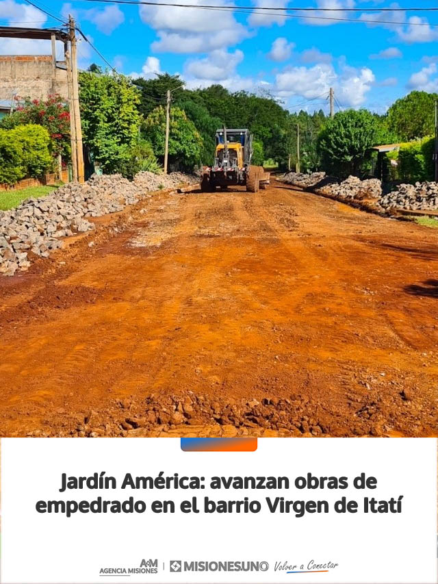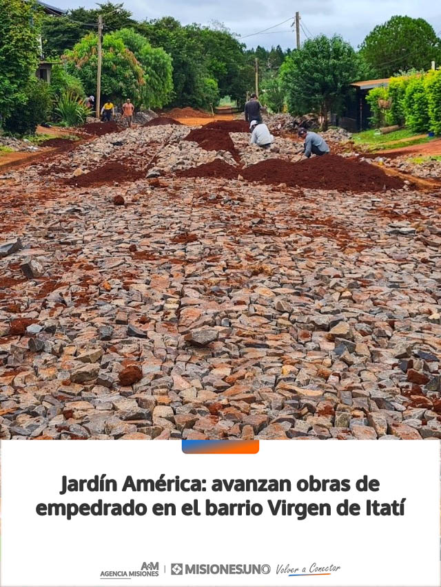 AGENCIA MISIONES.UNO | La Municipalidad de Jardín América continúa ejecutando trabajos de infraestructura en el barrio Virgen de Itatí, donde se desarrollan tareas de empedrado destinadas a mejorar la circulación y la calidad de vida de los vecinos.