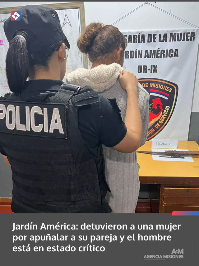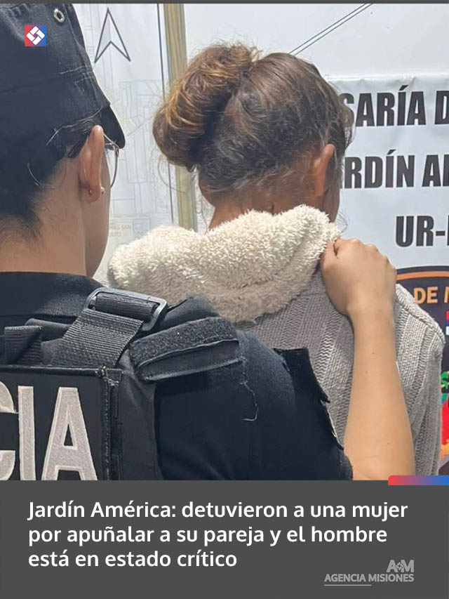 AGENCIA MISIONES.UNO | Un hombre de 31 años permanece internado en grave estado tras ser apuñalado por su pareja durante la madrugada de este sábado en Jardín América. La agresora, de 36 años, fue detenida por la Policía, que además secuestró el arma blanca utilizada en el ataque.
